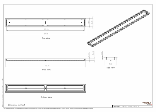 5x57 Classic Drop-in Air Vent, Flush Floor-Matching, All Metal, Floor Vent Cover (57x5)