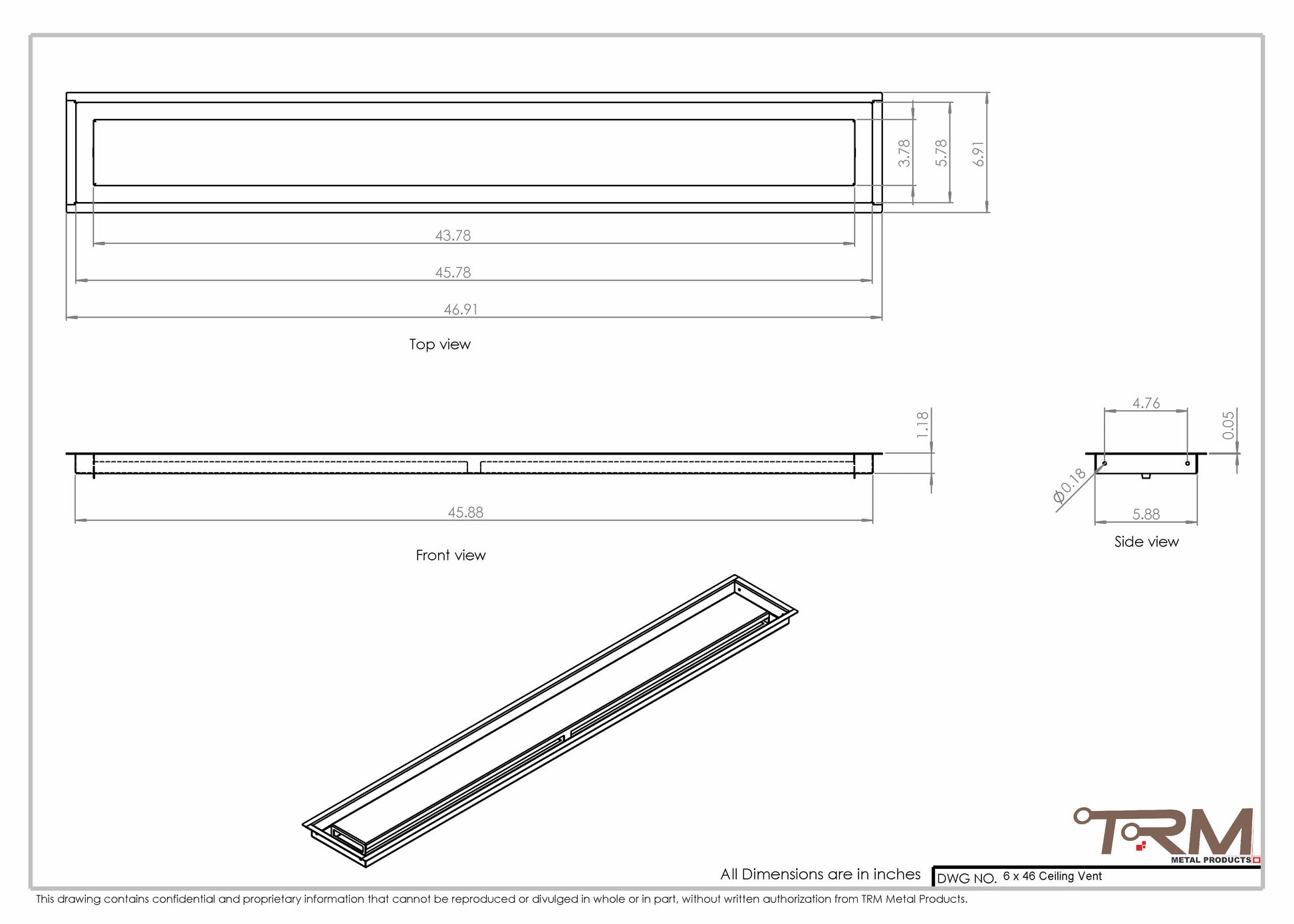 6x46-Modern Ceiling Vent Cover - TRM Metal (46x6)